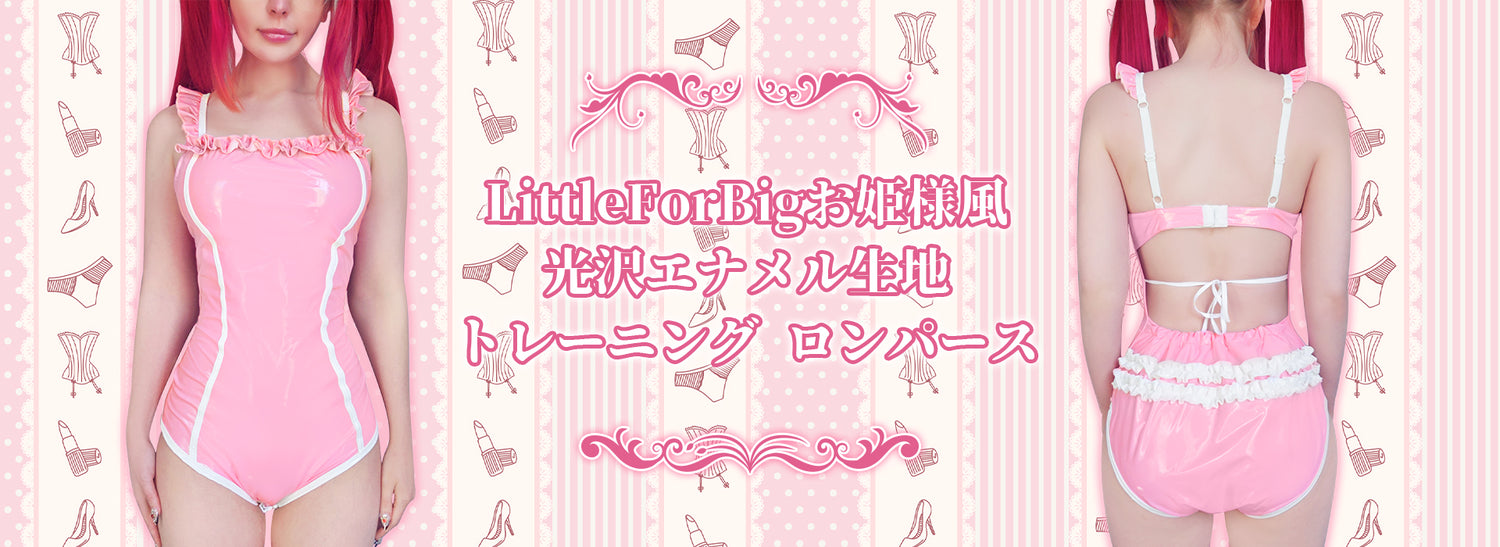LittleForBig大人ロンパース キャミソール【お姫様風】光沢フェイクレザー フリル袖とネックライン バック3D白フリル2段 バックレストレーニングロンパース 調整可能なストラップ ピンク 1027P通常価格 ¥5,580 JPY通常価格単価 あたり