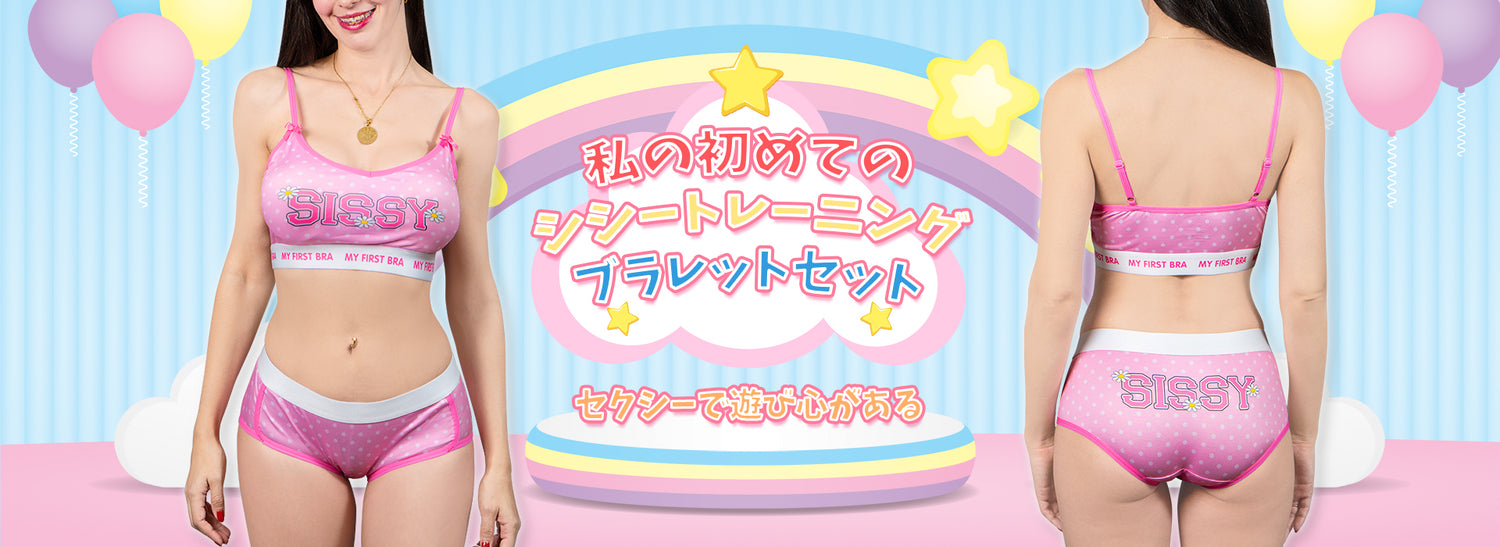 LittleForBigメンズ ブラレット2点セット【私の初めてのシシートレーニング】水玉柄 調節可能なストラップ 取り外し可能な綿カップ 厚手パッド付き ピンク MUT272P