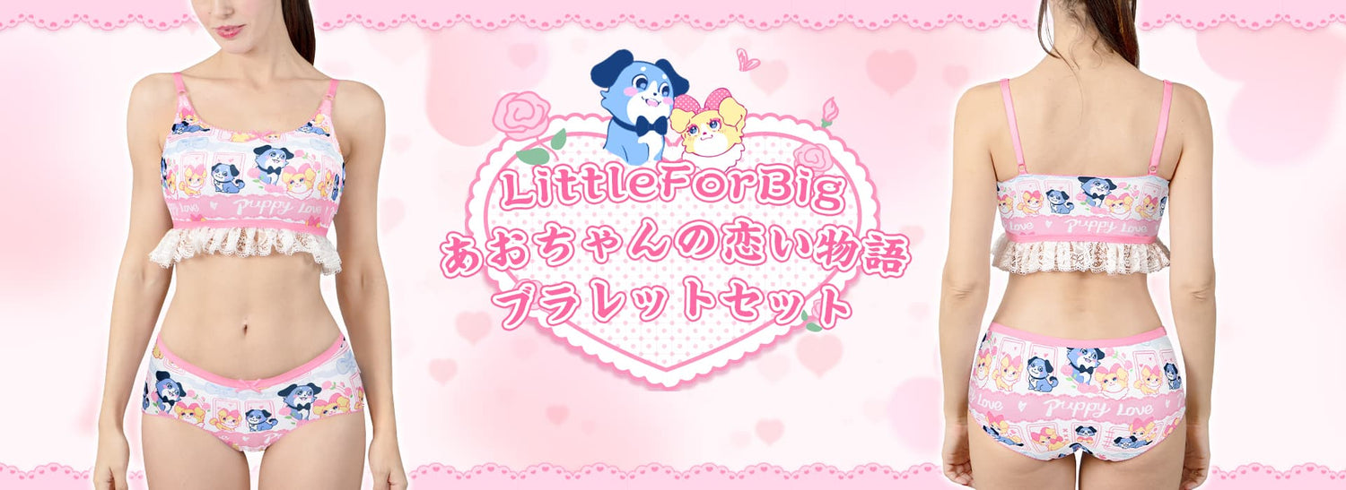 LittleForBigレーディス レース飾りブラレット2点セット【あおちゃんの恋い物語】キャミソールとパンティー 調整可能なストラップ スベスベシルキー触感 ピンク UT277P