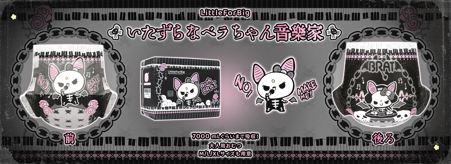 LittleForBig大人用紙おむつ 高吸収7000 mL 不織布パンツタイプ【いたずらなベラちゃんの音楽家】ゴシック風 厚型 オムツパンツ 調節可能な面ファスナー 黒 10枚入 D35通常価格 ¥6,980 JPY通常価格単価 あたり