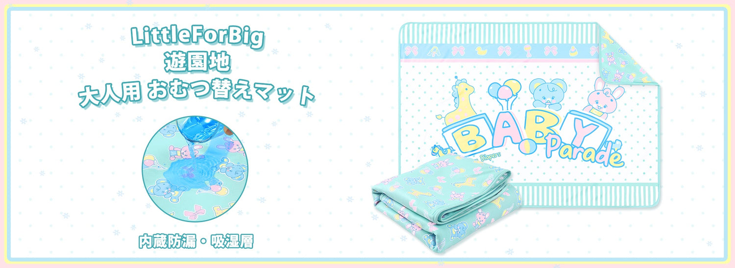 LittleForBig大人用おむつ替えマット 洗える防水マット 3層吸水構造 リバーシブル 遊園地柄 やわらかフリース&PUL 73×105cm 快適・安心設計 両面別柄 DD002V