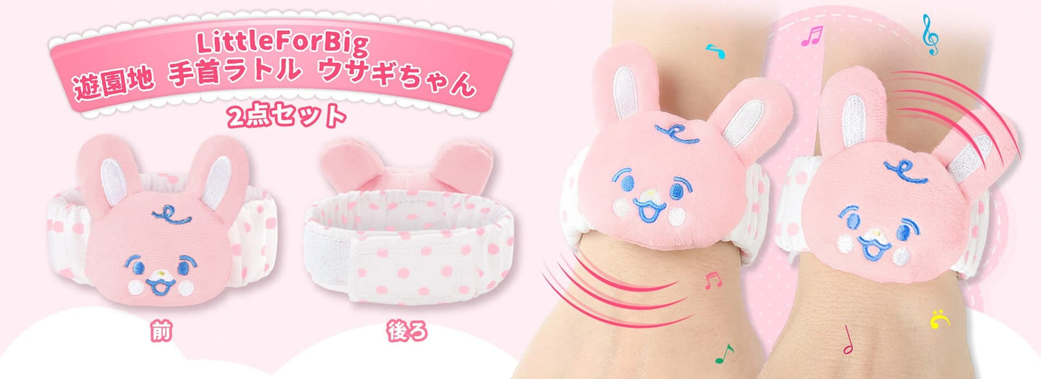 LittleForBig大人 手首ラトル2個セット【ウサギちゃん】遊園地のテーマ ベル付き 伸縮性リストバンド ぬいぐるみ 水玉柄調節可能な面ファスナー式ストラップ ピンク WR004P-S201