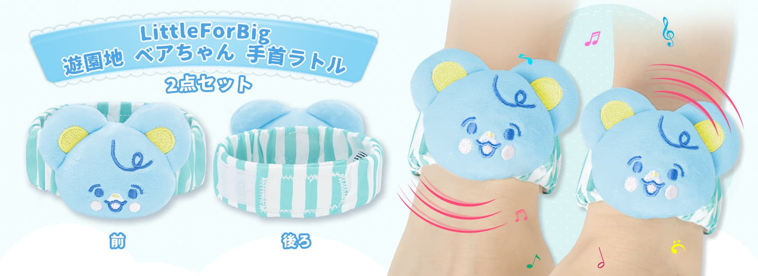 LittleForBig大人手首ラトル2個セット【ベアちゃん】遊園地 ベル付き 伸縮性 ぬいぐるみ ストライプ柄 調節可能な面ファスナー式 青 WR005B-S201