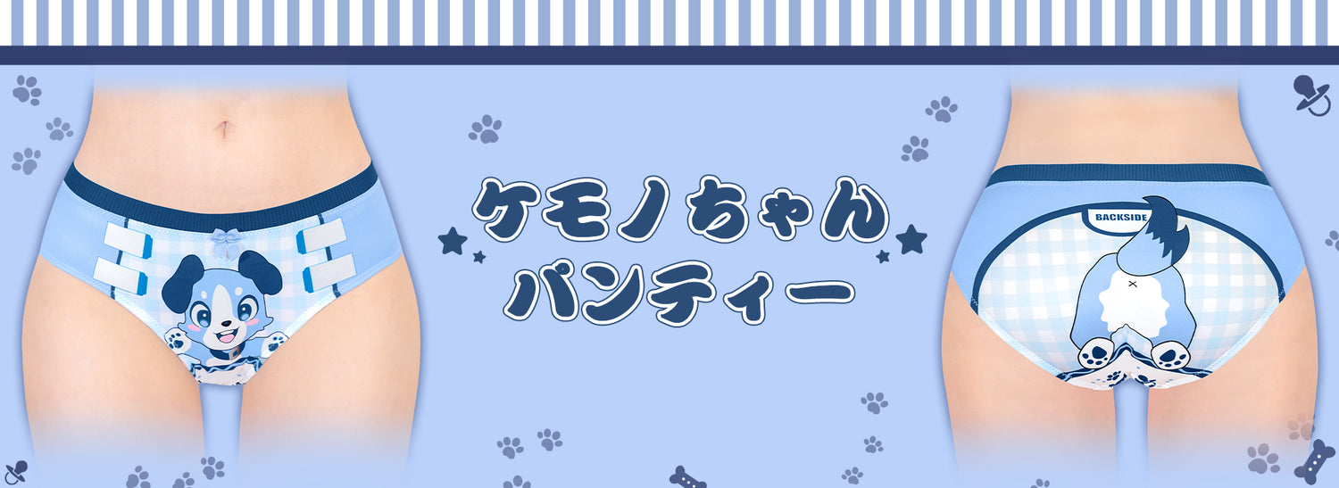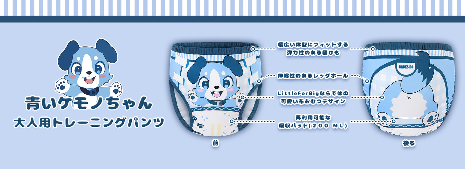 LittleForBig大人用シルキー単体で使えるトレーニングパンツ【ケモノちゃん】ウェストゴム付き 弾力性あり 漏れ防止 通気性 洗濯可 ブルー DC307B