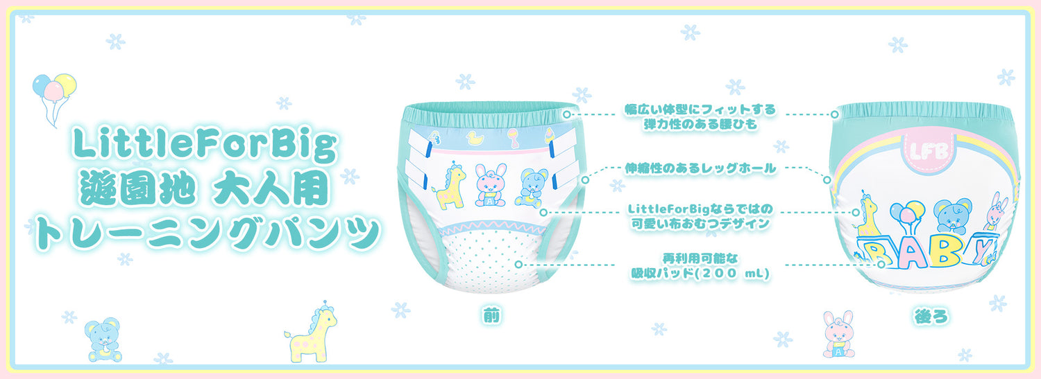 LittleForBig大人用シルキー単体で使えるトレーニングパンツ【遊園地】テーマプリント ストレッチウェストで快適 吸収・防漏・通気性 洗濯可 緑 DC313V