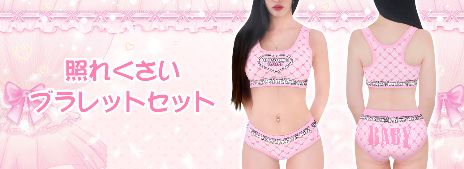 LittleForBigレーディスブラレット2点セット【照れくさいハート柄】格子縞のキャミソールとパンティー Uネック スベスベシルキー触感 フリルプリント ピンク UT269P