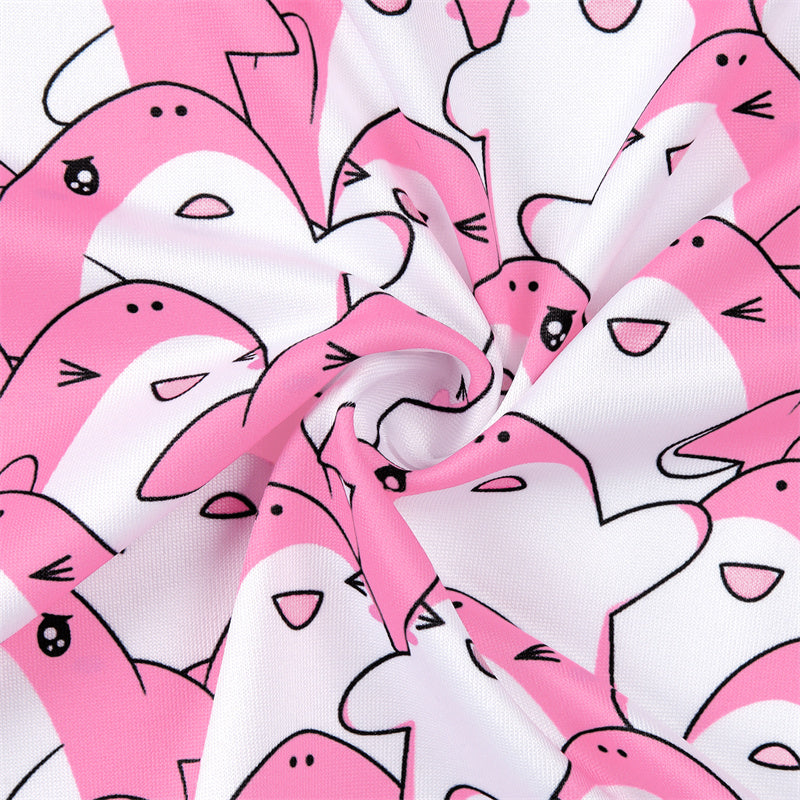 LittleForBigレディース シルキーミニドレス【友たちサメちゃん】総柄 袖なしドレス スカート 丸ネック 隠しジッパー ピンク 336P