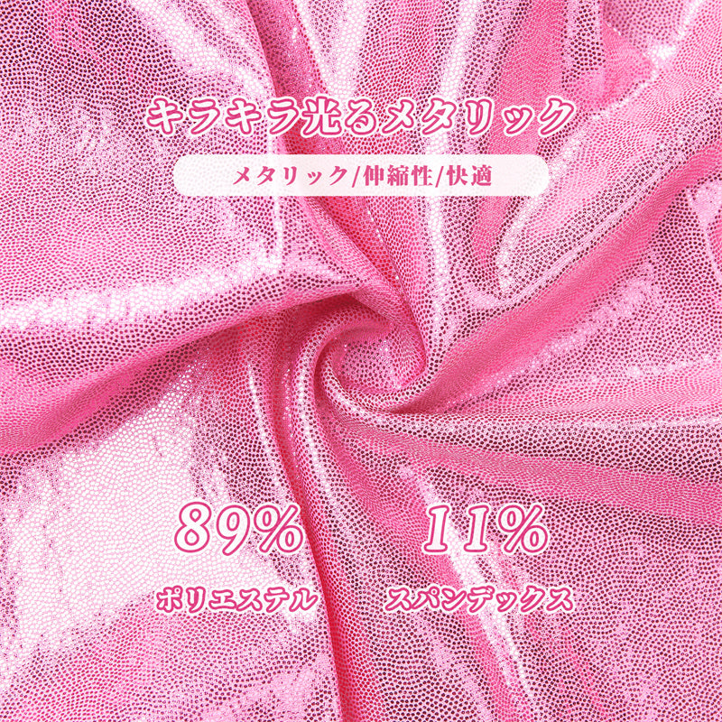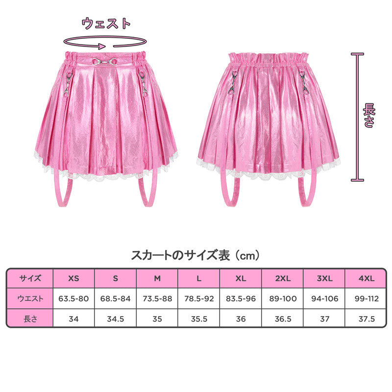 Littleforbig大人 プリーツスカート スパークルメタリック【トラブルメーカー】光沢感 Aラインドレス レース飾りの裾 フェイクストラップ ピンク 348P