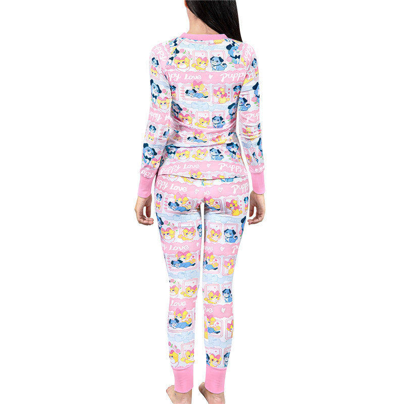 • 【ロマンチックなプリント】パジャマセットはピンクとライトブルーを基調とし、さまざまなポーズの子犬柄に加え、アルファベット柄もあしらわれています。子どもっぽい楽しさと可愛らしい雰囲気にあふれ、可愛いペットやキュートなスタイルが好きな方の心を惹きつけます。