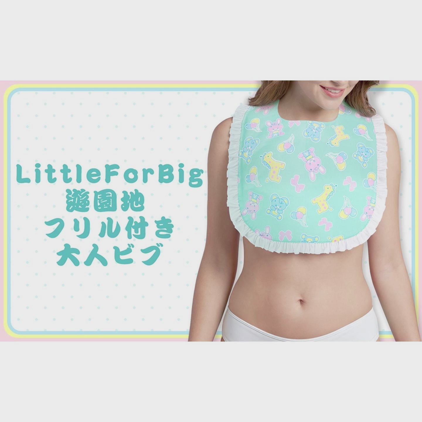 LittleForBig大人ビブ フリル飾りよだれかけ 可愛いエプロン 延長大きめサイズ【シルキー+防水シート】遊園地柄