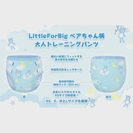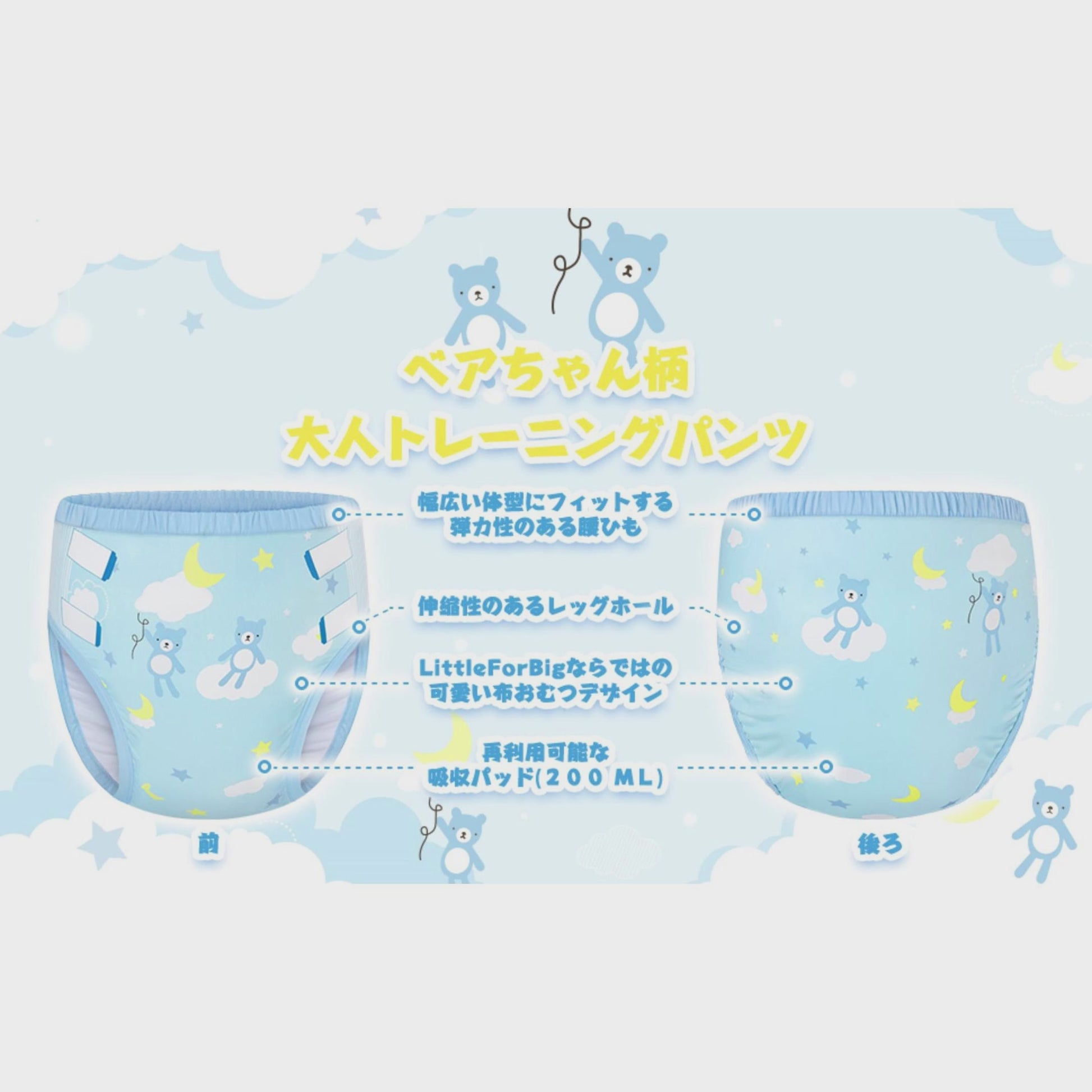 LittleForBig大人用シルキートレーニングパンツ【ベアちゃん】 ウェストゴム付き 吸収層入り 通気性 洗濯可 快適フィット ブルー