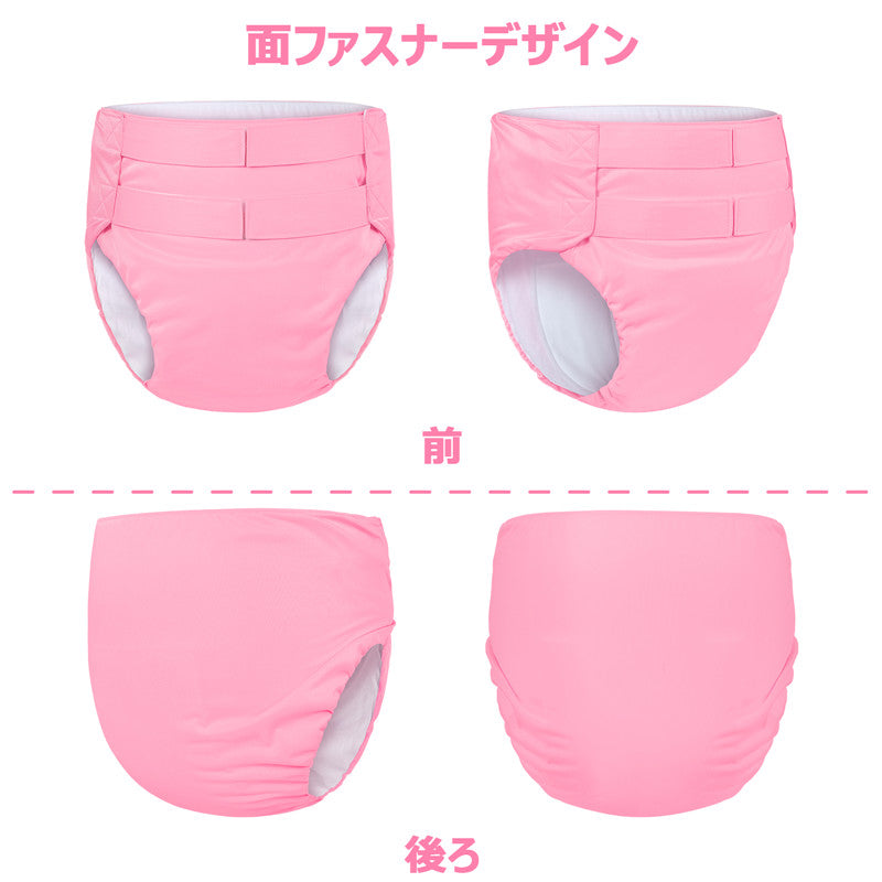 LittleForBig大人 単体で使えるトレーニングパンツ 面ファスナー式調節可能なウェスト【無地】2本取り面ファスナー 吸収・防漏・通気性 洗濯可 ピンク DC327P