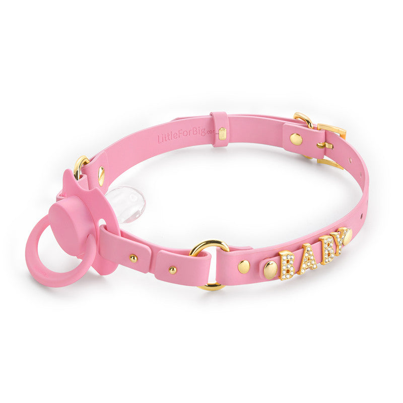 LittleForBig大人用おしゃぶり&ギャグ2点セット【ベビー・おしゃぶりチョーカー】付け替え可能な「BABY」文字ボダン 調整可能 シリコンニップル DIY可能 ピンク GS002P-B
