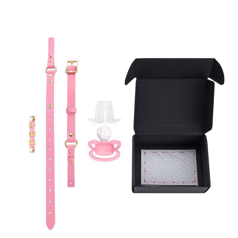 LittleForBig大人用おしゃぶり&ギャグ2点セット【ペット·おしゃぶりチョーカー】付け替え可能な「PET」文字ボダン 調整可能 シリコンニップル DIY可能 ピンク GS002P-P