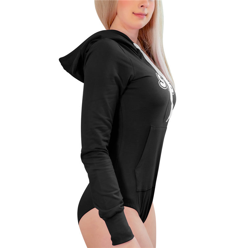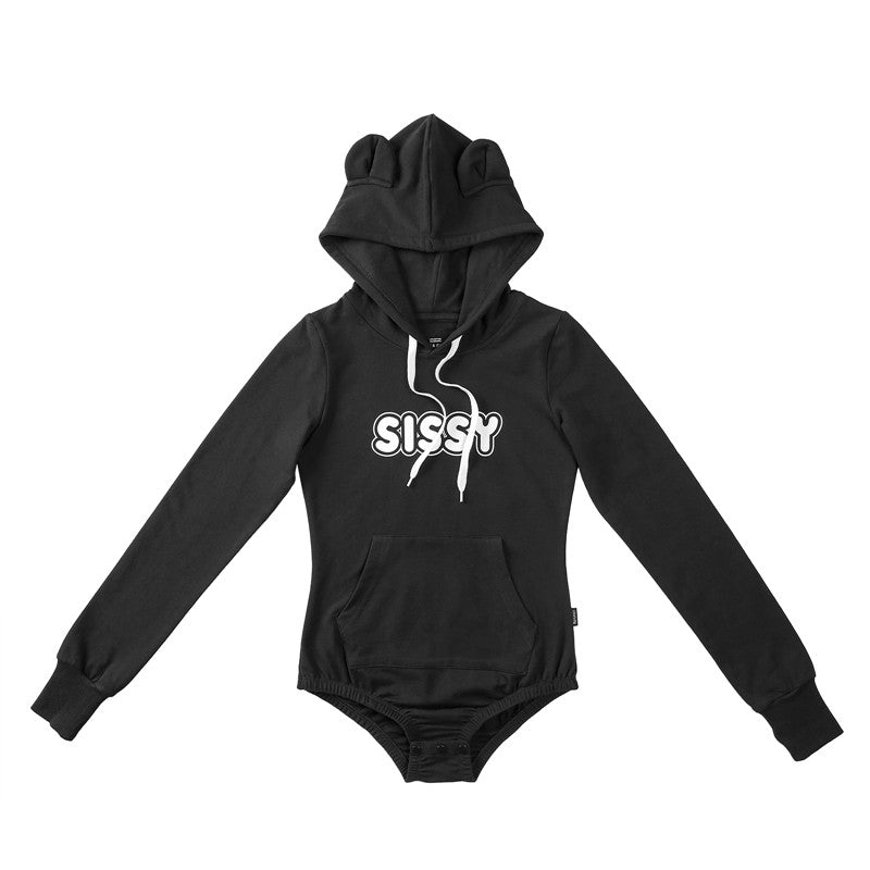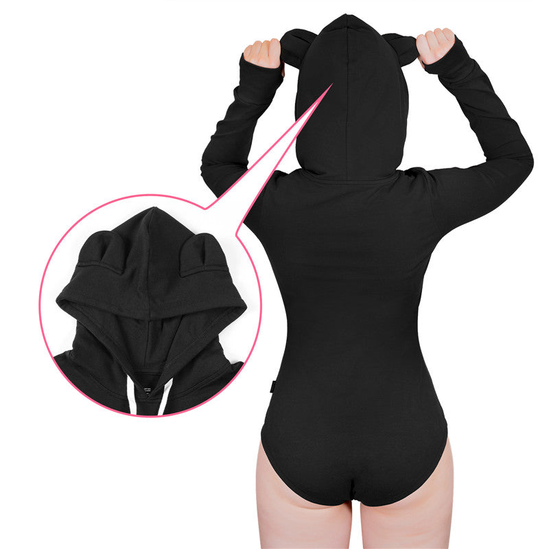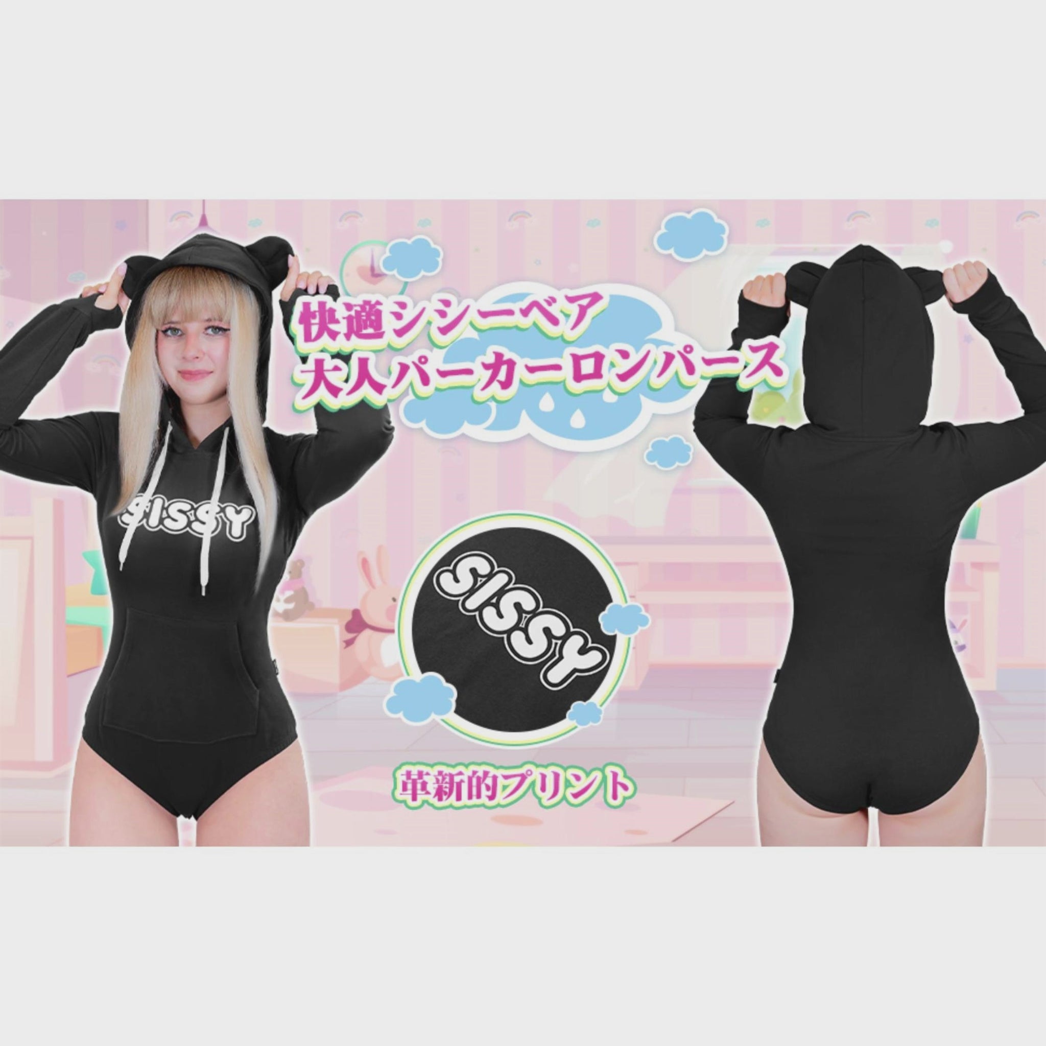 LittleForBigユニセックスロンパース 綿パジャマ パーカー【ゆったりしたベア】 プリントボディスーツ 長袖 フード付 ブラック M1026H