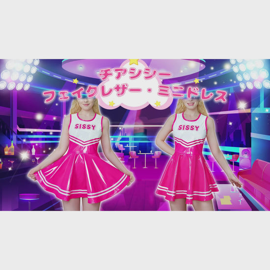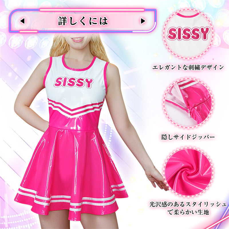 LittleForBigレディースワンピース ミニスカート【チアリーダー】光沢フェイクレザー 袖なしドレス アルファベットプリント ローズ M340F