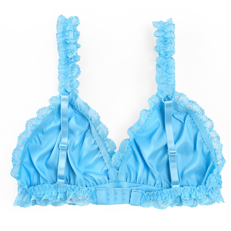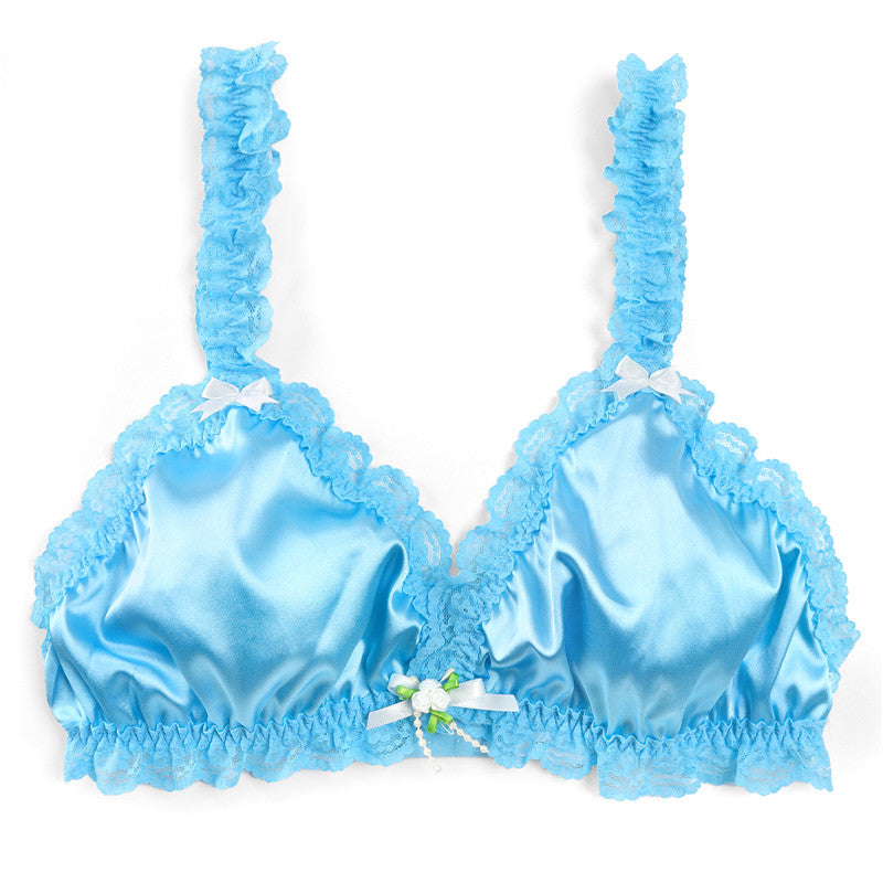 LittleForBig大人ブラ キャミソールインナーウェア レースヘム【サテン花】 光沢感あり繻子質感 シルキー ユニセックス ブルー MUB001B