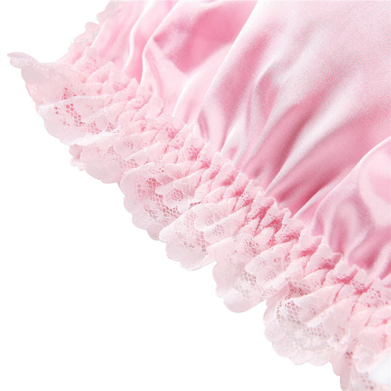 [LittleForBig] 大人ブラ キャミソールインナーウェア レースヘム【サテン花】 光沢感あり繻子質感 シルキー ユニセックス ピンク