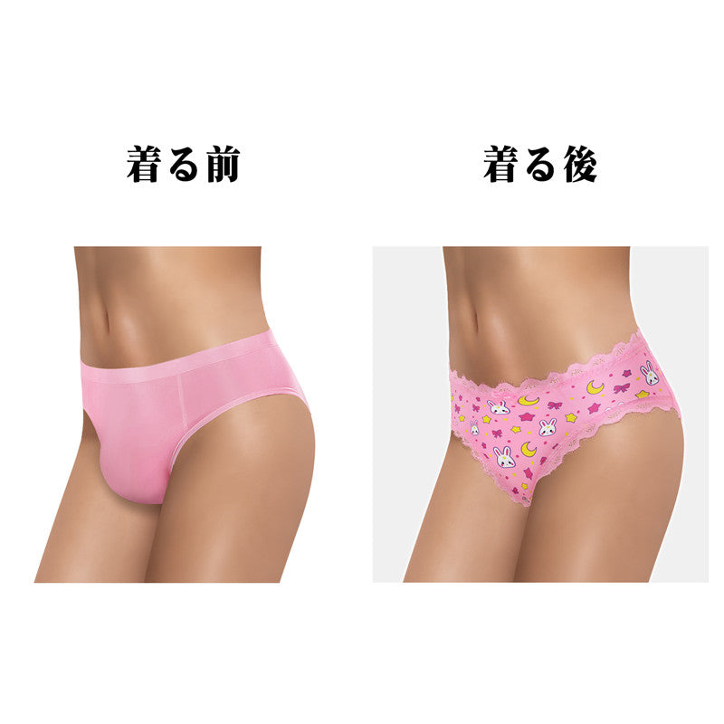 LittleForBigメンズ パンティー 体型カバー 可愛い 【うさぎ月】 背面のカットアウトメッシュデザイン ピンク