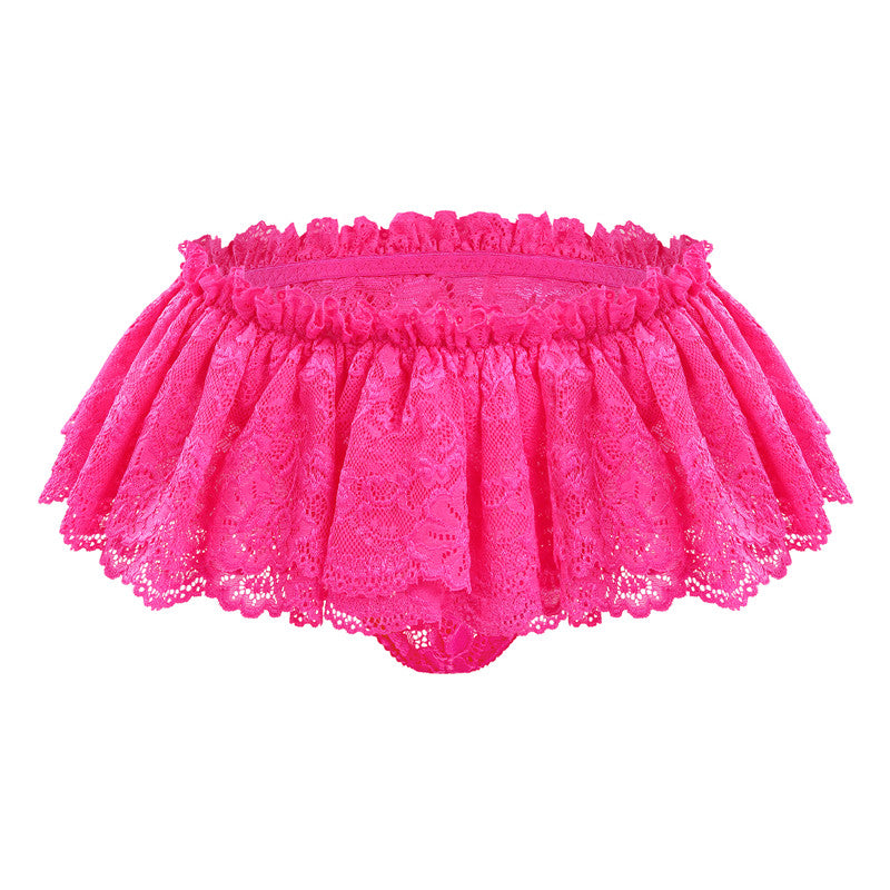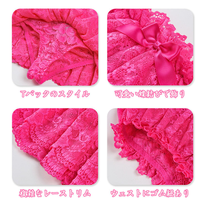 LittleForBigメンズ Tバック 蝶結びと2層重ねレース付き 可愛い パンティー 【レーススカート】 ふわふわ ブリーフ ローズ MUP516F