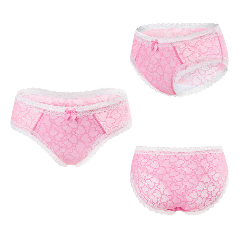[LittleForBigメンズ メッシュパンティー 体型カバー【ピンクのハート】レースとリボン飾り ヒップスターブリーフ タッキングガフパンティー 下着 ピンク MUP517P2