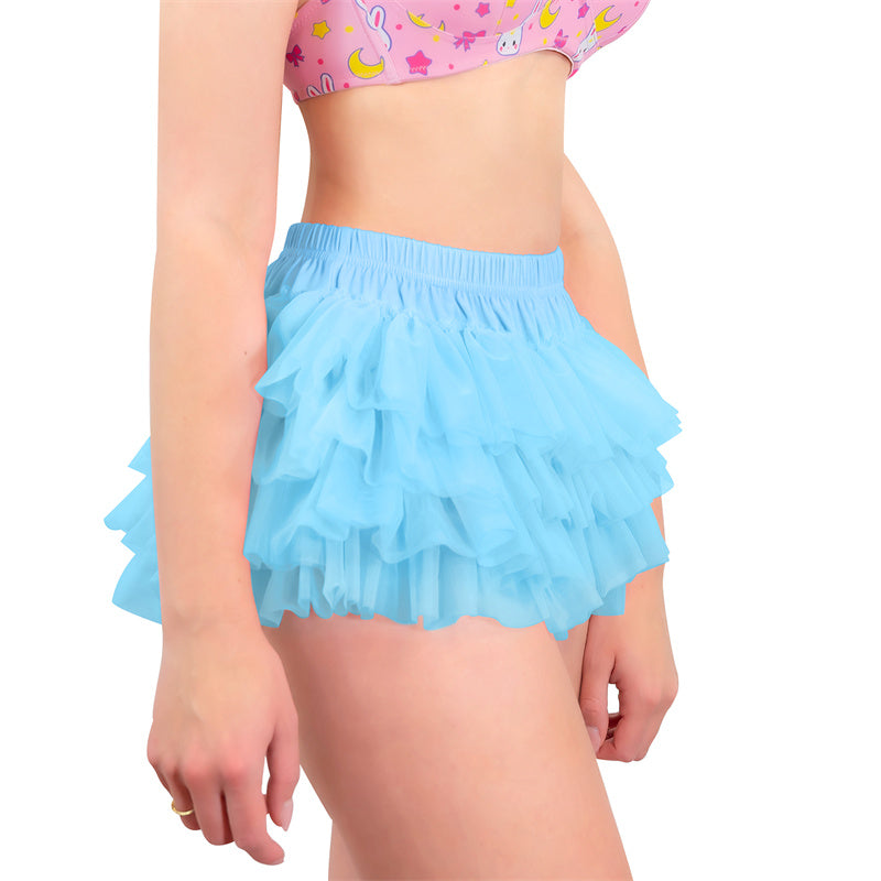 LittleForBigメンズ綿パンティー ふわふわペチコート【バレリーナチュチュスカート風】4層メッシュチュチュ リボン付き ブリーフ ブルー MUP525B