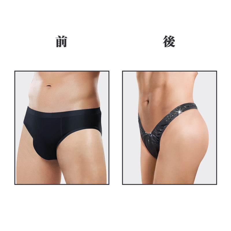 LittleForBigメンズショーツ 秘密Tバック【スパークルメタリック】 隠すガフショーツ スムース ブラック