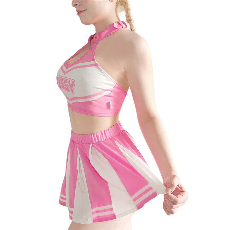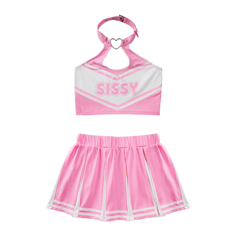 LittleForBigユニセックス ミニスカート2点セット【わくわくゲームデー】首輪襟 キャミソールトップス プリーツスカート バックレス 色合わせ ピンク