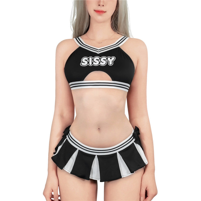 LittleForBigユニセックス ブラレット2点セット【チアリーダー】 調節可能なストラップ クロスストラップ プリーツスカート ブラック MUT264H