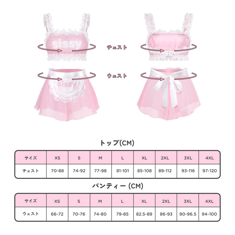 LittleForBig大人ブラレットセット【シシー・メイド】 取り外し可エプロン シースルー 3点セット ピンク MUT265P
