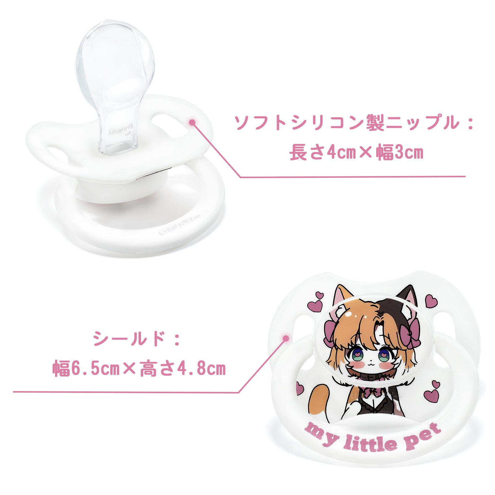 • 【愛らしい「獣耳娘ちゃん」おしゃぶり】 シールドには「獣耳娘ちゃん」のプリントが施され、喜びと安らぎを与えてくれること請け合いです。