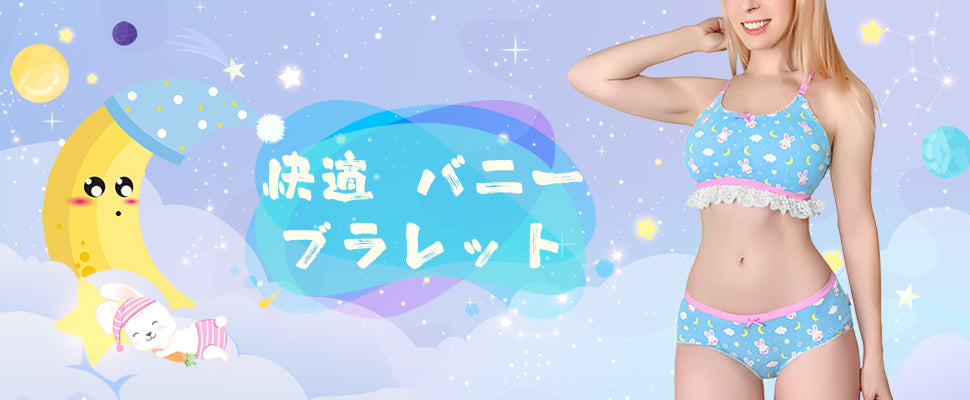 • 【トップ】:バニー星月の絵柄と白いフリルの裾は可愛くて魅力を示す。ストラップは調整可能で安心感アップ、フィット感は抜群。 【パンティー】:バニー星月の絵柄、白いスカラップの縁飾り、伸縮性を持つウェストと蝶結びは可愛い。