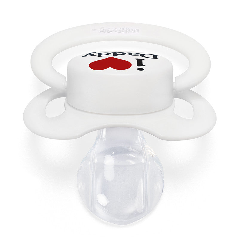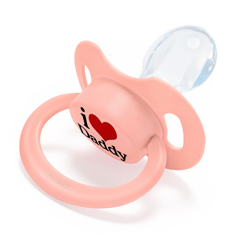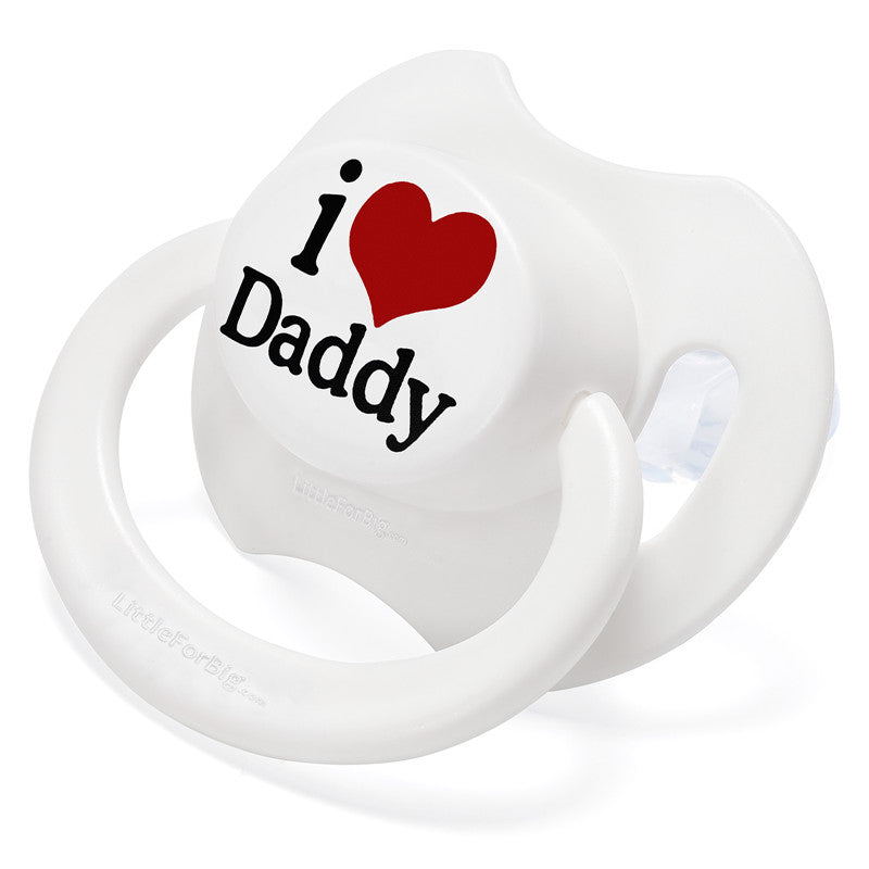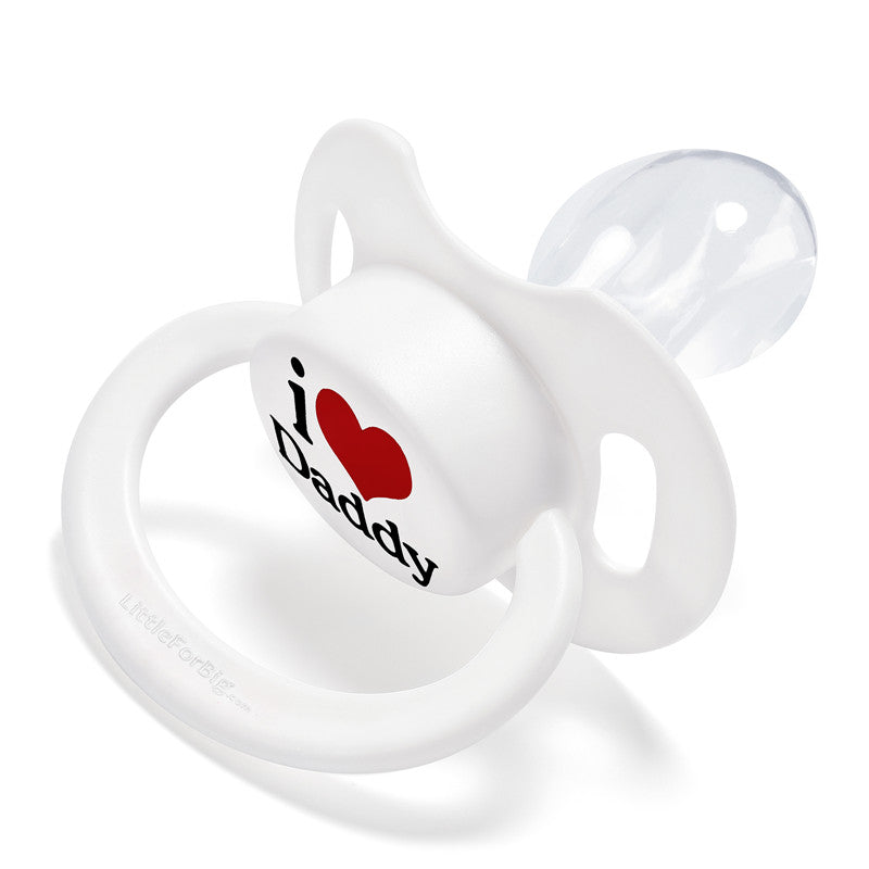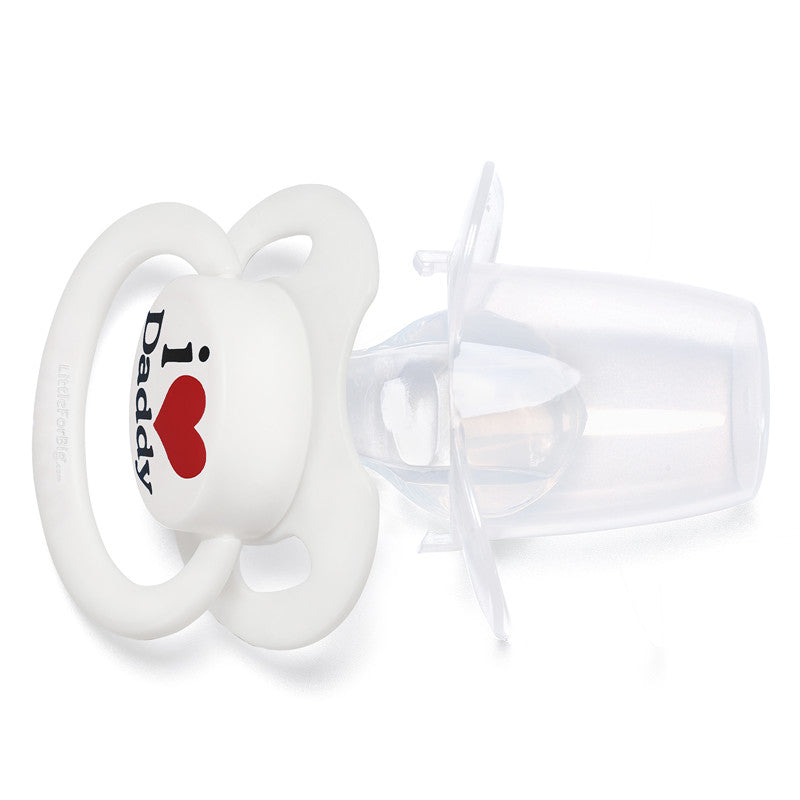 • 愛らしい「パパが大好き柄」おしゃぶり: 大人サイズのおしゃぶり愛好家のために特別にデザインされた「I Love Daddy」柄おしゃぶりの魅力を体験してください。このおしゃぶりのボタンには「I Love Daddy」のプリントが施され、喜びと安らぎを与えてくれること請け合いです。