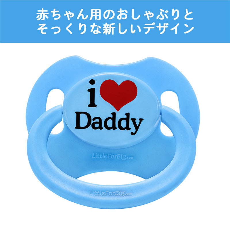 • 愛らしい「パパが大好き柄」おしゃぶり: 大人サイズのおしゃぶり愛好家のために特別にデザインされた「I Love Daddy」柄おしゃぶりの魅力を体験してください。このおしゃぶりのボタンには「I Love Daddy」のプリントが施され、喜びと安らぎを与えてくれること請け合いです。