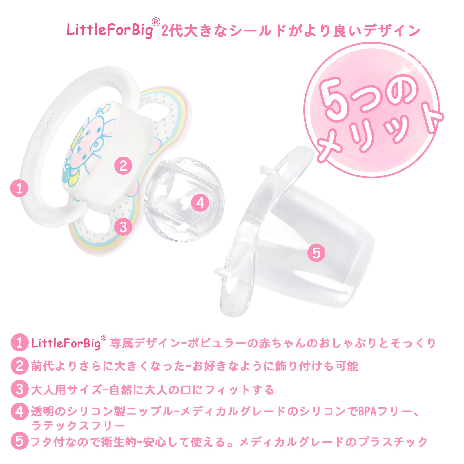 LittleForBig大人おしゃぶり 新型2代 蓋付【ベビーパレード】兎ちゃん ピンク