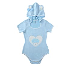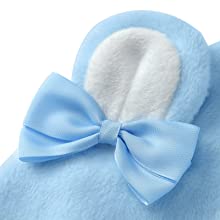 • クマをイメージしたデザイン、U型の襟、耳にリボンをつけ、さらにお腹にはハートと、可愛さ満点。