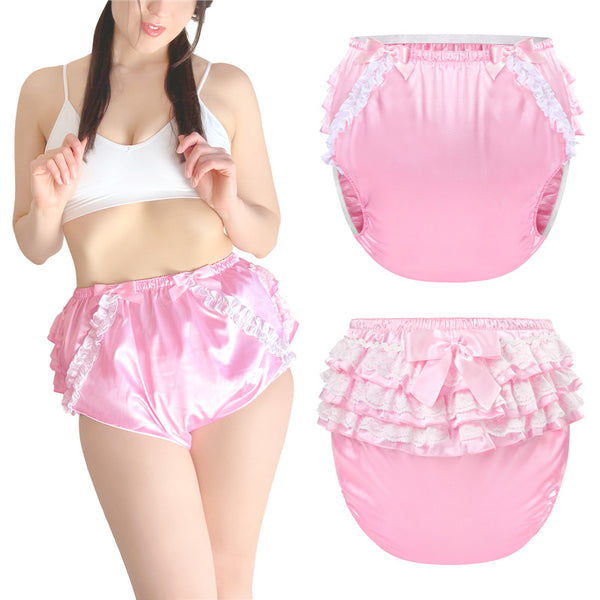 大人用おむつカバー 無地 光沢サテン【お姫様スカートのテーマ】レースフリル ゴム紐