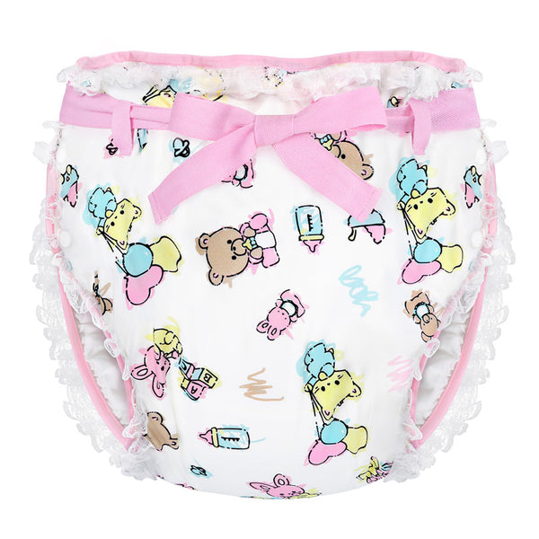 【保育園】 蝶結び飾りの伸縮性・調整可ウェスト 3層通気性・防水・漏れ防止 洗濯可